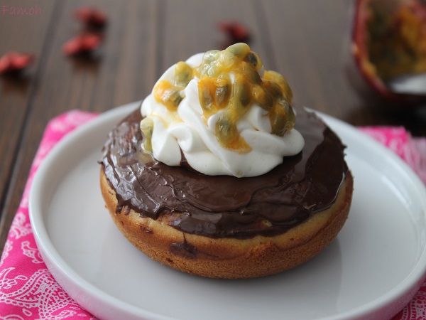 J’ai réalisé ce donuts chocolat avec sa chantilly passion en utilisant un moule à donuts que je viens de m’acheter.
