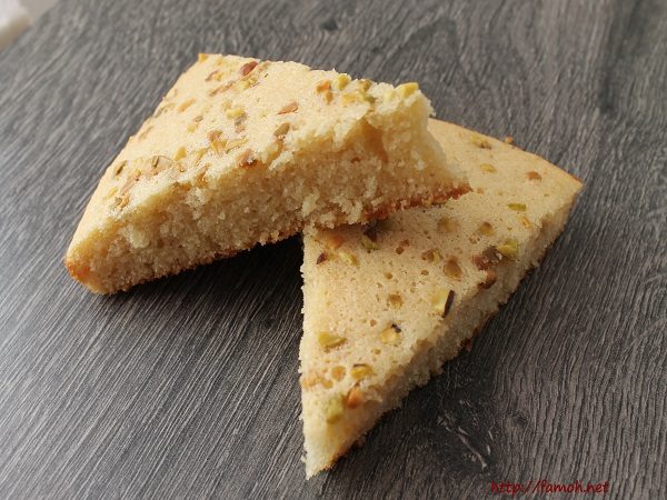 J’ai voulu associer le gout de l’amande avec la pistache et j’ai obtenu un financier très moelleux avec une belle touche croquante.