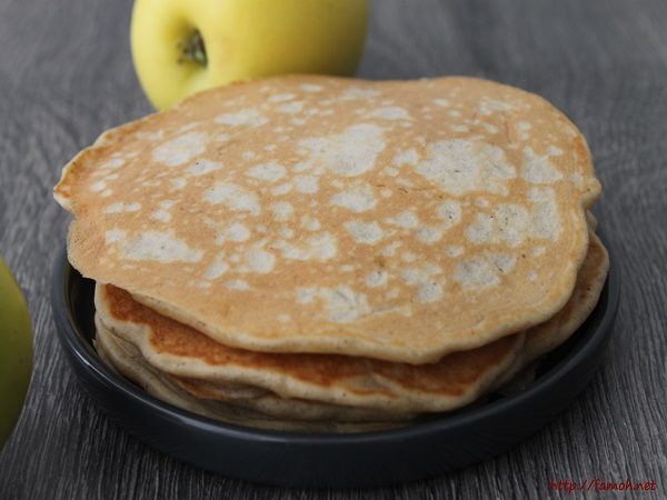 Cette recette de pancakes aux pommes m’est venue après avoir fait le constat de quelques pommes qui me restait dans mon fruitier.