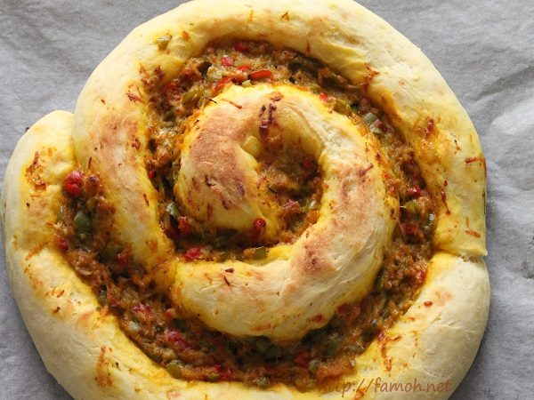 Pour réaliser la pizza spirale j’ai utilisé ma délicieuse Famoh pâte boulanger, qui ne m’a pas déçue et j’ai ainsi pu avoir une délicieuse pizza hyper moelleuse qui épouse parfaitement la garniture aux légumes.