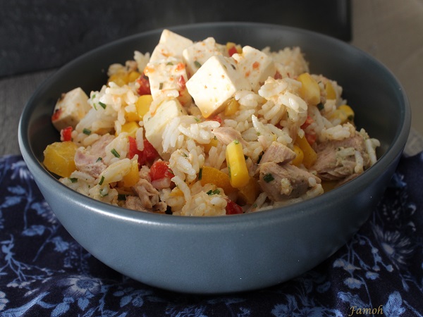 Elle est très facile à préparer, un peu de riz que vous mélangez avec quelques légumes, du fromage si vous aimez et une bonne vinaigrette.
