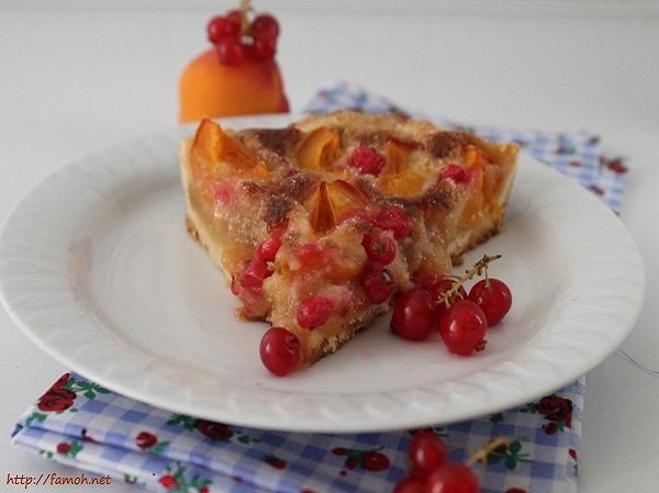 - Reprendre votre moule à tarte, verser votre préparation et disposer les abricots coupés ainsi que les groseilles.