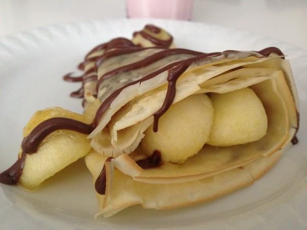 J’ai fourré mes crêpes de quelques boules de pommes caramélisées (recette à venir ), arrosées de pâte à tartiner chocolat noisette et pour assouvir nos soifs j’ai préparé à mes enfants un milkshake à la vanille, un kit prêt à l’emploi très pratique ainsi que d’une bonne tasse de thé pour moi.
