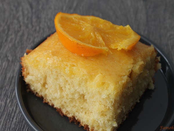 - Dès que le gâteau est cuit, l’imbiber du sirop d’orange à l’aide d’un pinceau sur toute la surface.